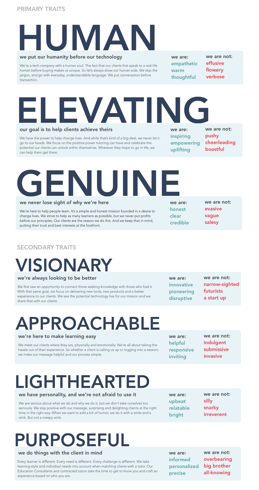 The voice and brand of Varsity Tutors was all over the place. At times, it was confused, a bit shady, and felt somewhat like a used car dealership.